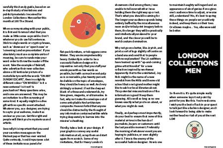 Finally, and perhaps most importantly, do your best to ensure that none of this material arrives in the hands of journalists, buyers or customers until the last possible moment. Preferably the morning of whatever event you are hoping to publicise, or even slightly ater it. Time is the enemy of the successful fashion designer. How is one