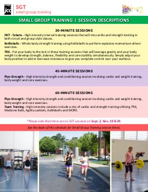 See the back of this schedule for Small Group Training session times.
