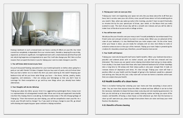 organized, and clean is significant. A straightened room with a made bed and pile-free floor will