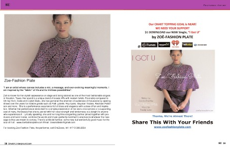 For booking Zoe-Fashion Plate, the performer, call ChriZcera, Int'l @713.398.2554