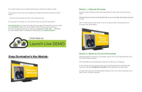 He also share with you the most powerful Snaps to use in your story to generate more