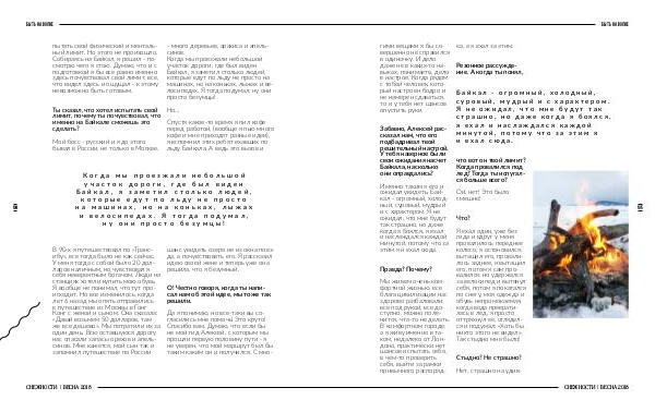 - много деревьев, арахиса и апельсинов. Когда мы проезжали небольшой участок дороги, где был виден Байкал, я заметил столько людей, которые едут по льду не просто на машинах, но на коньках, лыжах и велосипедах. Я тогда подумал, ну они просто безумцы!