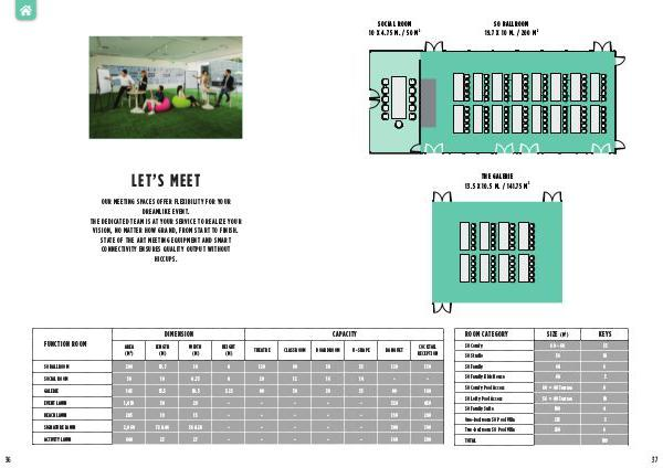 SOCIAL ROOM 50 10 4.75 4 20 12 16 GALERIE 145 13.5 10.5 3.25 80 50 EVENT LAWN 1,450 50 29 - - BEACH LAWN 285 19 15 - 2,060 72 & 46 56 & 28 640 23 27