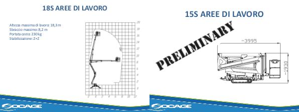 18S AREE DI LAVORO Altezza massima di lavoro: 18,3 m Sbraccio massimo: 8,2 m Portata cesto: 230 kg Stabilizzazione: Z+Z