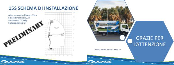 15S SCHEMA DI INSTALLAZIONE Altezza massima di lavoro: 15 m Sbraccio massimo: 6,9 m Portata cesto: 230 kg Stabilizzazione: Z+Z