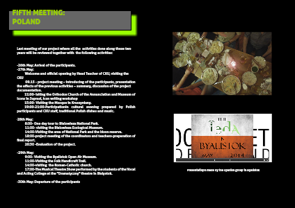 09.15 - project meeting – introducing of the participants, presentation the effects of the previous activities – summary, discussion of the project