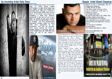 Shanti Chapman has been influenced by Gospel music since age 15, when he was introduced to the music of Commissioned, Be Be and Ce Ce Winans, the Clark Sisters, and many more. It was while listening to these songs that he knew his calling and it is his desire that his own music might have a similar impact on listeners.