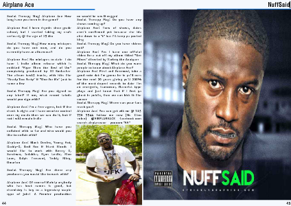 Airplane Ace: First and foremost, take a good note dat I'm gonna be in ya’ll ears for the next 20 years giving ya’ll 200% of the most dopest records to date. I'm an energetic, humorous, flavorful type playa and just know that if I feel ya ghost in public, then we can kick it like soccer.