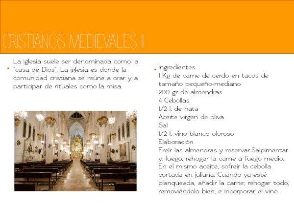 Freír las almendras y reservar.Salpimentar y, luego, rehogar la carne a fuego medio. En el mismo aceite, sofreír la cebolla cortada en juliana. Cuando ya esté blanqueada, añadir la carne; rehogar todo, removiéndolo bien, e incorporar el vino.