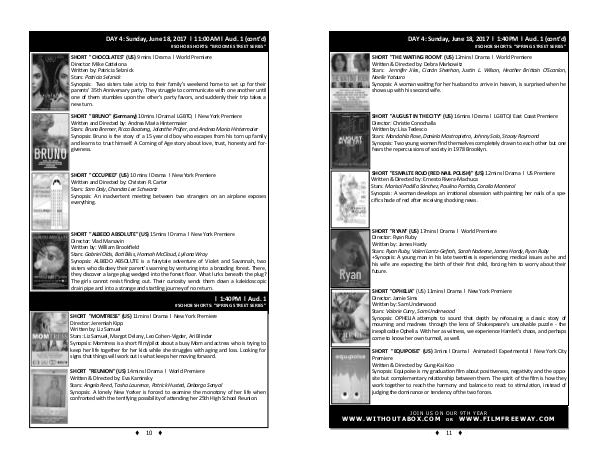 SHORT " CHOCOLATES "( US) 9 mins l Drama l World Premiere Director: Mike Ca�elona Wri�en by: Patricia Selznick Stars: Patricia Selznick Synopsis: Two sisters take a trip to their family’ s weekend home to set up for their parents’ 35th Anniversary party. They struggle to communicate with one another un�l one of them stumbles upon the other’ s party favors, and suddenly their trip takes a new turn.