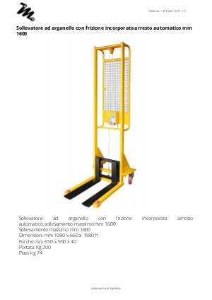 Sollevatore ad arganello con frizione incorporata arresto automatico mm