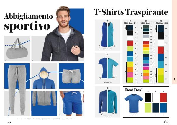Abbigliamento sportivo 1 2 5 3 4 6 1 SOL’S Laguna - P.313 2 SOL’S Stone - P.136 3 SOL’S Jake - P.219 4 SOL’S Sherpa - P.150 5 SOL’S Juicy - P.218 6 SOL’S June - P.218 250
