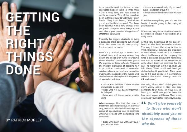 GETTING THE RIGHT THINGS DONE BY PATRICK MORLEY 52 • Solutions