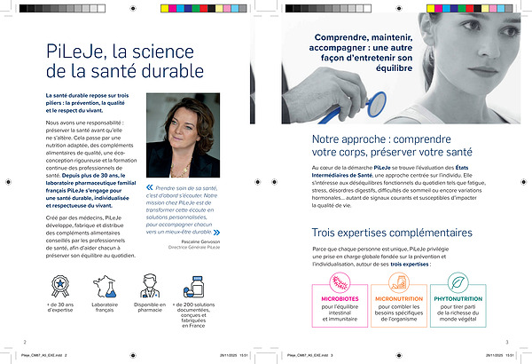 Nous avons une responsabilité: préserver la santé avant qu’ elle ne s’ altère. Cela passe par une nutrition adaptée, des compléments alimentaires de qualité, une écoconception rigoureuse et la formation continue des professionnels de santé. Depuis plus de 30 ans, le laboratoire pharmaceutique familial français PiLeJe s’ engage pour une santé durable, individualisée et respectueuse du vivant.