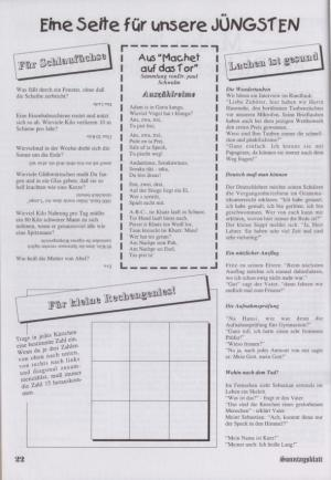 Der Deutschlehrer möchte seinen Schülern die Vergangenheitsform im Grammatikunterrricht erklären : “ Ich habe getanzt , ich habe gemalt , ich bin geritten , ich bin geschwommen . Wer von euch kann mir erklären , wovon hier immer die Rede ist ?” Der kleine Seppl meldet sich . “ Ja , Herr Lehrer . Sie haben sehr viel Zeit und sind sehr vielseitig !”