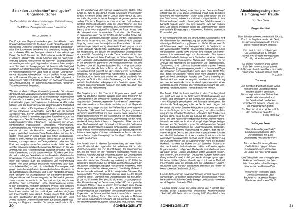 Die Autorin führt die Leser zunächst in den Forschungstand ein , greift weit aus in der historischen Kontextualisierung von Arbeits- und Straflagern in der Sowjetunion ( Stichwort : Gulag ) - von Kriegsgefangenenlagern und Zwangsarbeiterlagern . Sie skizziert die Siedlungsgeographie der Deutschen in Ungarn und behandelt die in der Zwischenkriegszeit entstandene ethnopolitische Konfliktlage , die zu der Überzeugung der politischen Führung und der schwabenfeindlichen völkischen Schriftsteller des Landes führte , dass die Zeit zur Lösung des „ deutschen Problems “ mit dem Anlass der sowjetischen Forderung von Reparationen in menschlicher Arbeitskraft als günstige Gelegenheit gekommen sei . Die Durchführung der Deportation wird am Beispiel von vier Siedlungsregionen der Ungarndeutschen dargestellt . Die virulent gewordene Überzeugung in Ungarn , dass die Anwesenheit jener Deutschen , die an ihrer angestammten Sprache und Identität festhalten , nicht mehr erwünscht sei , wurde in die politische Praxis umgesetzt . Deshalb wurde bei der Bestimmung der Auswahlkriterien der zu Deportierenden nicht die deutsche Herkunft , sondern das Bekenntnis zur deutschen Muttersprache oder Identität , die kulturelle und politische Orientierung der Ungarndeutschen maßgebend . Die bereits assimilierten - im ungarischen Sinne - „ guten “ Deutschen sollten verschont werden , alle anderen , die „ schlechten “ Deutschen , wurden rigoros zum Gang in die ( für viele ) todbringenden Arbeitslager gezwungen . Mit seiner diesbezüglichen Verordnung vom 5 . Januar 1945 hat Innenminister Erdei die Deportierung der „ schlechten “ Ungarndeutschen auch rechtlich sanktioniert , erschließt die Autorin in beindruckender Deutlichkeit ( S . 112 ).