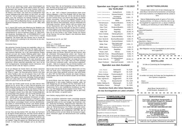 Das Leben der Familie verlief normal , bis Vater Heinrich Wolf , geboren am 26 . Januar 1904 , im Jahre 1944 als Deutscher zum Militär einberufen wurde und bei den Kämpfen um Budapest gefallen ist . Mutter Elisabeth blieb mit den drei kleinen Kindern zurück und musste sich alleine um die Familie kümmern . Das von ihrem Ehegatten erbaute Haus hätte allen Familienmittgliedern den notwendigen Platz geboten , wenn die Familie Wolf sich nicht zu ihrem Deutschtum bekannt hätte . Da aber Frau Elisabeth Wolf – ähnlich allen anderen deutschen Einwohnern von Sektschi – nicht bereit war , ihre Abstammung zu verleugnen , haben die in Ungarn nun herrschenden Antifaschisten auch gegenüber den drei kleinen unschuldigen Kindern und ihrer alleinerziehenden Mutter ihr verbrecherisches Können unter Beweis gestellt . Eine Vorgehensweise , vor der Bundestag , Nationalrat und auch EU-Parlament die Augen zudrücken und erklären , für solche Verbrechen nicht zuständig zu sein .