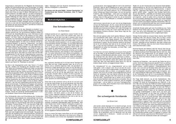 Eine Schlüsselrolle käme nach Einschätzung des Vorsitzenden des Deutschen Gemeinderates der zweisprachigen Grundschule zu . Seit September 2020 nach langem Hin und Her ist der Deutsche Gemeinderat Tarian Träger der örtlichen Grundschule . „ Nach der Wahl von Thomas Klinger ( dem Sohn der langjährigen Schulleiterin Theresia Klinger , R . G .) war das keine Frage mehr . Das war für uns ein Muss , denn wenn man hier nicht auf die Sprache und deren Tradierung achtet , dann ginge diese auch verloren . Durch die direkte Kontrolle können wir der Gefahr entgegenwirken . Denn gerade bei den Zugezogenen werden die Rufe nach mehr Englischunterricht immer lauter .” Das große Ziel wäre jetzt die Anstellung einer muttersprachlichen Lehrkraft aus Österreich oder Deutschland , was sich aber ohne Unterstützung des Entsendelandes nicht realisieren lässt . Für Fülöp steht aber fest : „ Es ist unsere Pflicht , diese Tradition Deutsch lebendig zu halten .” Deswegen plant der Deutsche Gemeinderat auch den örtlichen Kindergarten zu übernehmen .