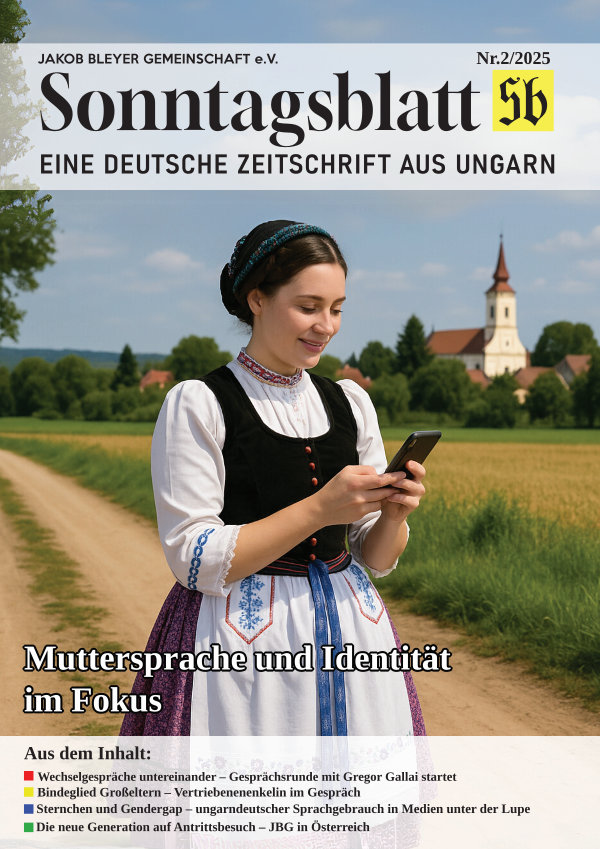 Wechselgespräche untereinander – Gesprächsrunde mit Gregor Gallai startet Bindeglied Großeltern – Vertriebenenenkelin im Gespräch Sternchen und Gendergap – ungarndeutscher Sprachgebrauch in Medien unter der Lupe Die neue Generation auf Antrittsbesuch – JBG in Österreich