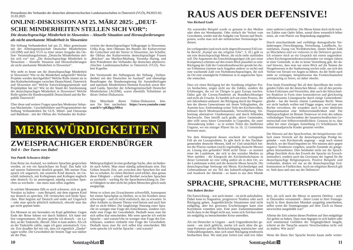 Pressedienst des Verbandes der deutschen altösterreichischen Landsmannschaften in Österreich( VLÖ), PA2025-02; 31.03.2025