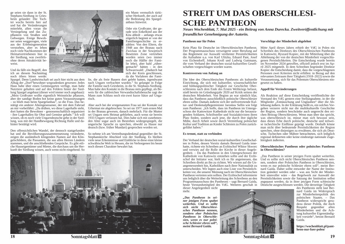 Neues Wochenblatt, 7. Mai 2025- ein Beitrag von Anna Durecka. Zweitveröffentlichung mit freundlicher Genehmigung der Autorin.