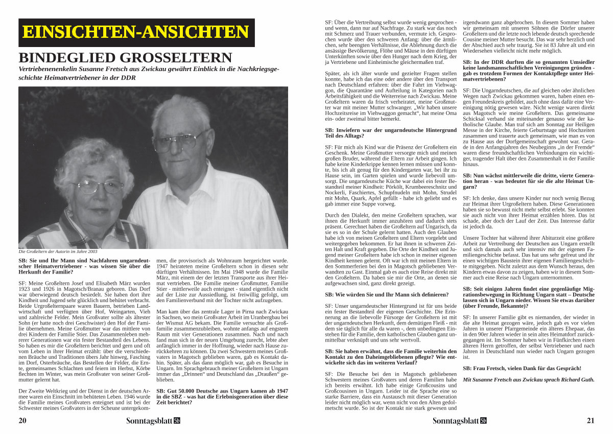 Vertriebenenenkelin Susanne Fretsch aus Zwickau gewährt Einblick in die Nachkriegsgeschichte Heimatvertriebener in der DDR