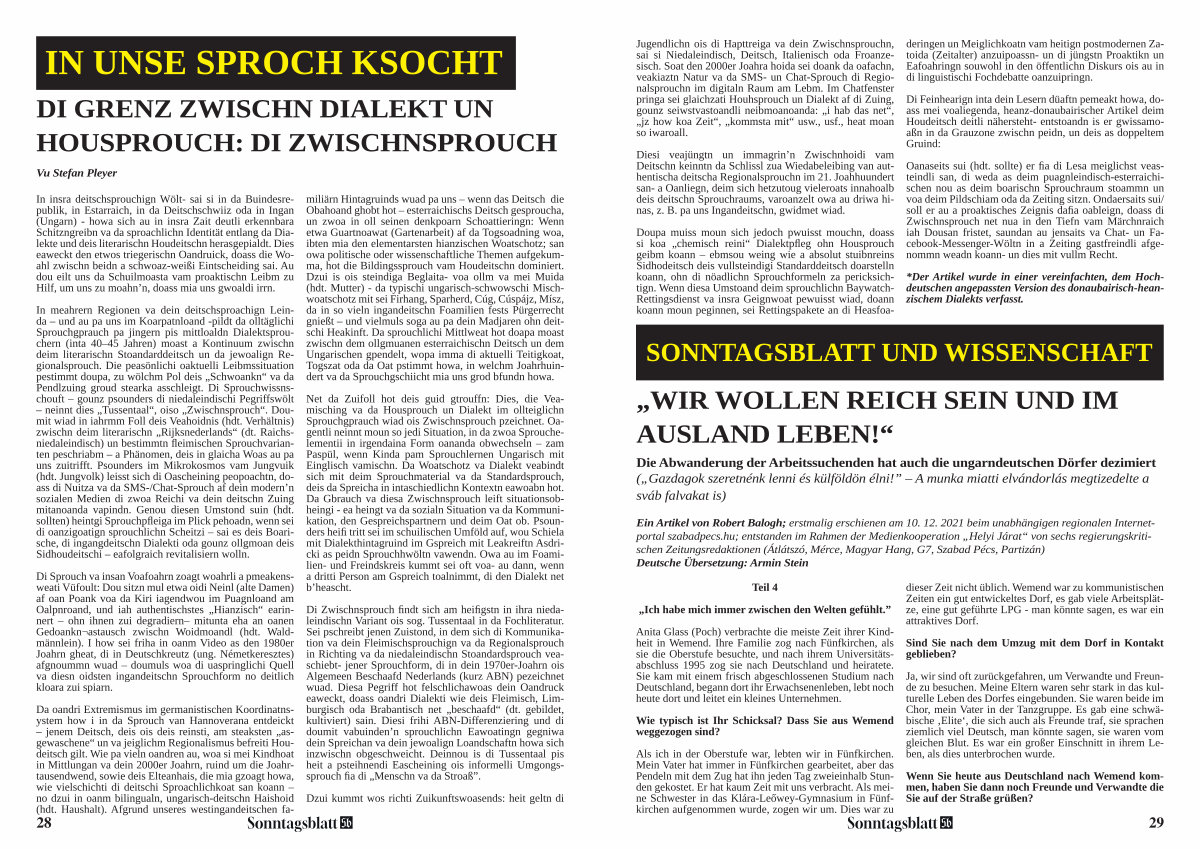 * Der Artikel wurde in einer vereinfachten, dem Hochdeutschen angepassten Version des donaubairisch-heanzischem Dialekts verfasst.