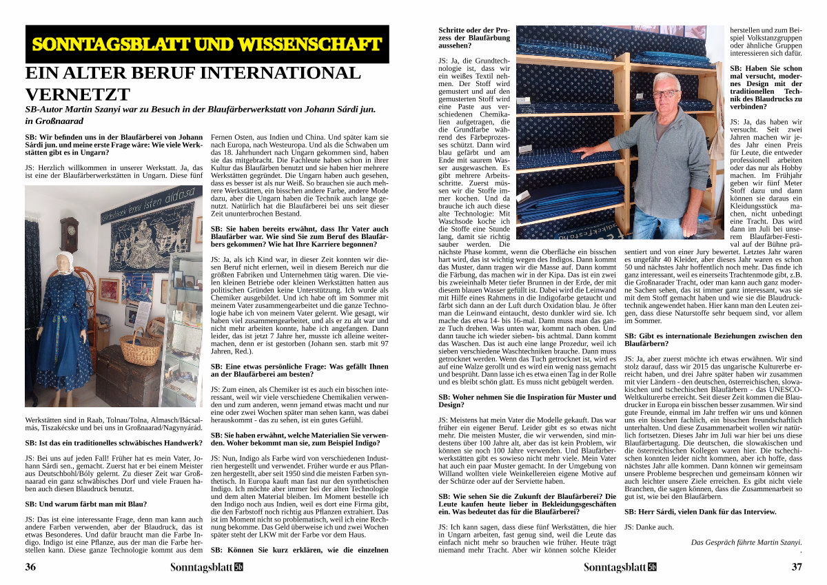 SB-Autor Martin Szanyi war zu Besuch in der Blaufärberwerkstatt von Johann Sárdi jun. in Großnaarad