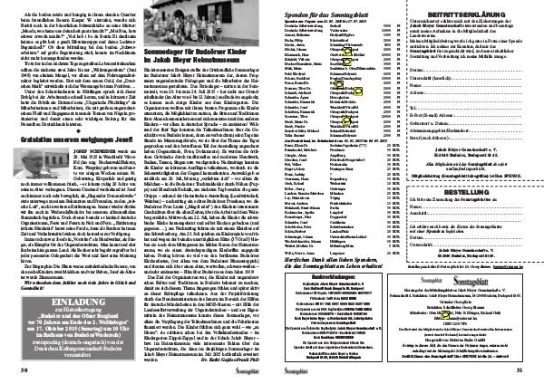 Ein interessantes Ereignis stellte das Ortskundliche Sommerlager im Budaörser Jakob Bleyer Heimatmuseum dar, dessen Prog- ramm ungarndeutsche Pädagogen und die Mitarbeiter des Hei- matmuseums gestalteten. Das Ferienlager – mitten in der Som- merzeit, vom 20. bis zum 24. Juli 2015 – hat nicht nur Grund- schulkinder( im Alter von 6 bis 12 Jahren) aus Budaörs angelockt, es kamen auch einige Kinder aus dem Kindergarten. Die Organisatoren wollten mit ihrem bunten Programm alle Kinder ermuntern, die Möglichkeit zu nutzen, die Sitten und Traditionen ihrer Ahnen kennenzulernen und sich zusammen mit den anderen Kindern – vor allem in deutscher Sprache – zu amüsieren! Wäh- rend der fünf Tage konnten die TeilnehmerInnen über die Ge- schichte von Budaörs lernen, denn sie verbrachten jeden Tag eine Stunde im Museumsgebäude, wo sie über das Thema des Tages gesprochen und den betroffenen Teil der Ausstellung angeschaut haben( Gegenstände, Fotos, Dokumente). Es wurden die örtlichen Gebräuche durch traditionelles und modernes Handwerk, Backen, Tanzen, Singen usw. wachgerufen. Nachmittags konnten die Kinder an kürzeren Ausflügen teilnehmen, wodurch sie die Sehenswürdigkeiten der Gegend kennenlernten. Auswahl gab es reichlich: am 20. Juli, Montag „ verliebten sich” – vor allem die Mädchen – in die Budaörser Trachtenkleider durch Nähen( Pup- pe) und Blaudruck-Technik, am nächsten Tag besuchte die ganze Gruppe – anhand der thematischen Ausstellung( Land wirtschaft, Weinbau) – nachmittag ein echtes Budaörser Presshaus, wo die Budaörser Frau Luntz(„ Magdi néni”) den Kindern interessante Geschichten über die alten Zeiten, über die Arbeit auf dem Wein- berg erzählte. Mittwoch, am 22. Juli, haben die Kinder die schwäbische Küche kennengelernt und selbst Kuchen gebacken( und gegessen...), am Nachmittag fuhren sie mit einem Kleinbus auf den Schwabenberg. Am 23. Juli spielten sie Kinderspiele von früher und wegen der beinahe unerträglichen Hitze( 37 Grad!) blieben sie nach dem Mittagessen im kühlen Raum des Heimatmu- seums, wo sie einen deutschsprachigen Kinderfilm angeguckt haben. Freitag hörten sie viel von den berühmten Budaörser Kirchenfesten,( vor allem von dem Budaörser Blumenteppich) und freuten sich über einen alten, wertvollen, schwarz – weißen – und sehr amüsanten – Film über Budaörs aus dem Jahre 1919! Das Ziel der Organisatoren war, die Kinder mit ungarndeutschen Kultur und Traditionen in Budaörs bekannt zu machen, damit sie sich diesem Thema hingezogen fühlen und später aktiv an dieser Kultupflege teilnehmen. Aus der Projektförderung durch das Bundesministerium des Innern im Bereich der Hilfen für deutsche Minderheiten in den MOE-Staaten – mit Hilfe der Landesselbstverwaltung der Ungarndeutschen – und aus Eigen- mit teln des Heimatmuseums konnte dieses Sommerlager, vor allem die Verpflegung der TeilnehmerInnen und die Fahrtkosten finanziert werden. Die Kinder fühlten sich ganz wohl – wie „ zu Hause”: sie erfuhren schon bei den Volkskundestunden – im Kindergarten Zippel-Zappel und in der Schule Jakob Bleyer – bzw. im Heimatmuseum viele interessante Fakten über das Ungarndeutschtum, die dann im diesjährigen Sommerlager im Jakob Bleyer Heimatmuseum im Juli 2015 hoffentlich erweitert wurden.
