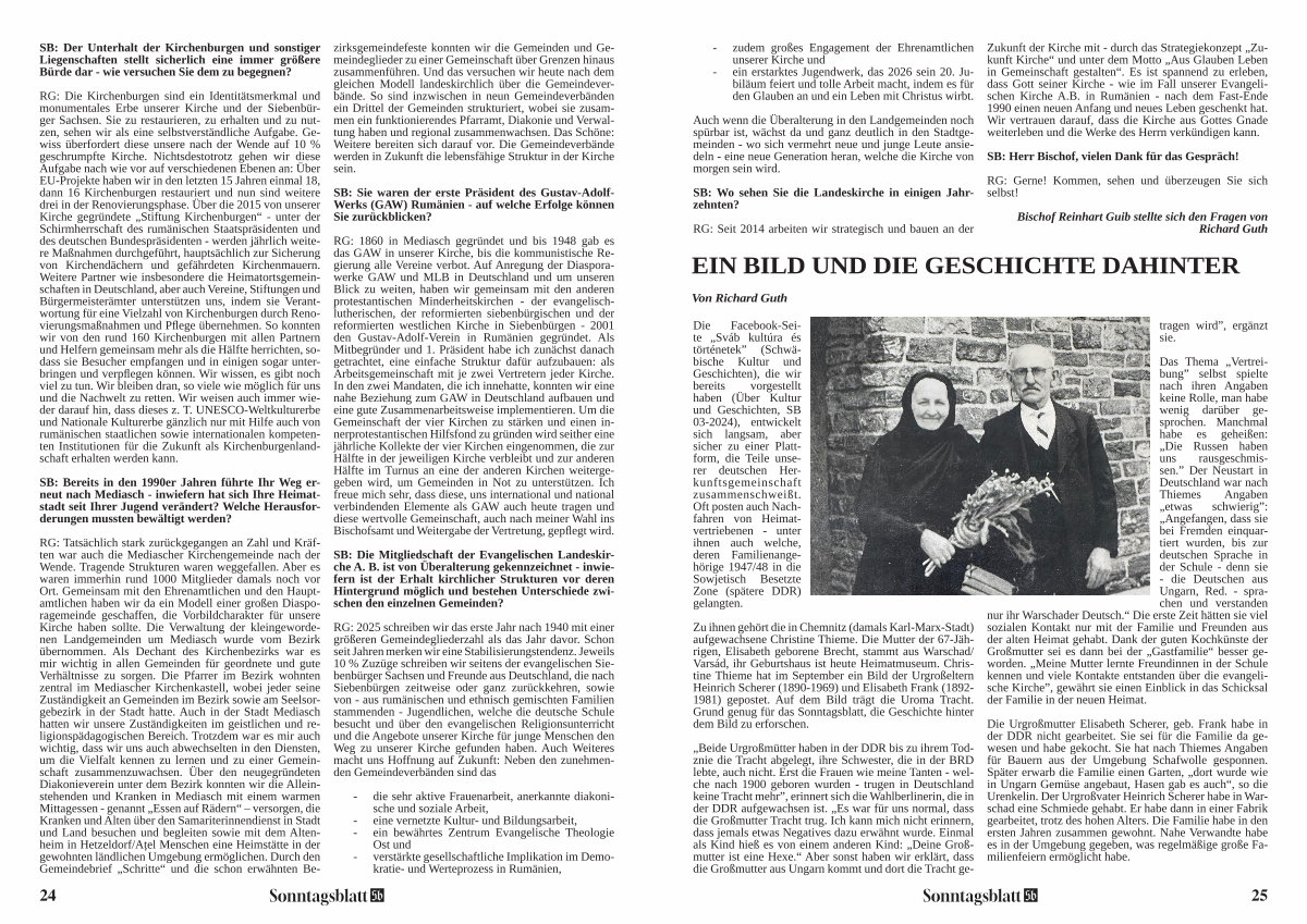 RG: 2025 schreiben wir das erste Jahr nach 1940 mit einer größeren Gemeindegliederzahl als das Jahr davor. Schon seit Jahren merken wir eine Stabilisierungstendenz. Jeweils 10 % Zuzüge schreiben wir seitens der evangelischen Siebenbürger Sachsen und Freunde aus Deutschland, die nach Siebenbürgen zeitweise oder ganz zurückkehren, sowie von- aus rumänischen und ethnisch gemischten Familien stammenden- Jugendlichen, welche die deutsche Schule besucht und über den evangelischen Religionsunterricht und die Angebote unserer Kirche für junge Menschen den Weg zu unserer Kirche gefunden haben. Auch Weiteres macht uns Hoffnung auf Zukunft: Neben den zunehmenden Gemeindeverbänden sind das