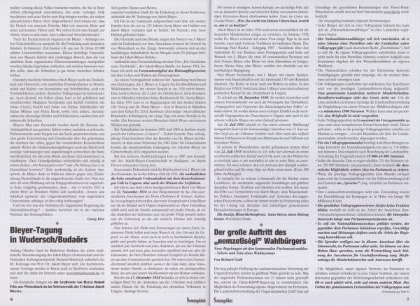 Er kämpfte bis zu seinem Lebensende für die Rechte seiner Landsleute , die anerkannte ungarische Staatsbürger mit gelebter deutscher Kultur , Tradition und Identität sein wollten . Ich meine das Erbe und Vermächtnis von Jakob Bleyer , dem Wissenschaftler , Politiker , Humanist , Vorkämpfer und Erwecker des ungarischen Deutschtums , sollten wir immer wieder in Erinnerung rufen bei der Lösung von aktuellen und zukünftigen gemeinsamen Herausforderungen in Europa .