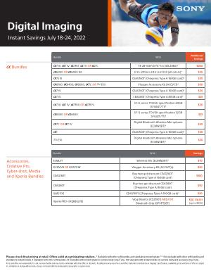 Prices and offers non-redeemable for cash , non-transferable and may not be combinable with other offers or discounts . Reseller prices may vary . Prices and offers stated do not include tax or shipping . Specifications , availability , prices and terms of offer are subject to cancellation or change without notice . Sony is not responsible for photographic , typographic or system errors .