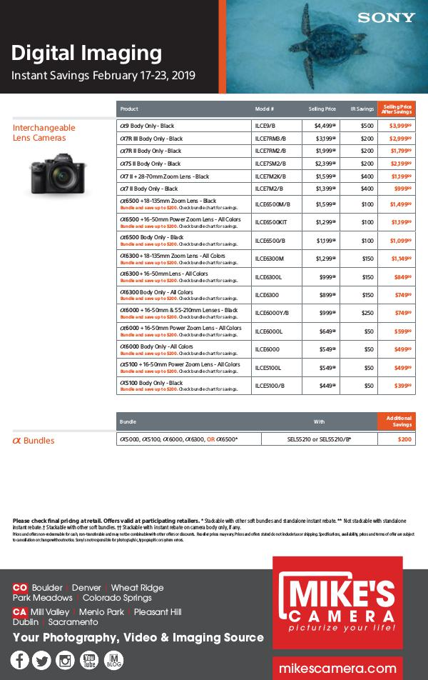 ILCE6500M/B $1,599 99 $100 $1,499 99