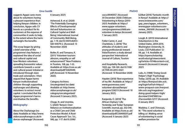 Kanjanda , O . ( 2014 ) ‘ The African Orphans ’ Life : Yesterday and Today ’ European Scientific Journal , pp . 332-345 . Available at : https :// core . ac . uk / download / pdf / 236408207 . pdf ( Accessed : 9 January 2021 ) k20kat ( 2016 ) ‘ Fantastic month in Kenya !’ Available at : https :// www . reviewcentre . com / gap _ years / agape _ volunteers _ wwwagape-volunteerscomreview _ 3961695 ( Accessed : 10 January 2021 ).