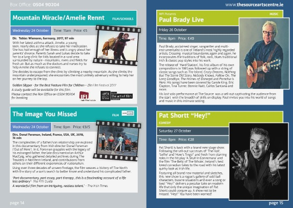 Featuring all brand new material and sketches, this new show is a rogue’ s gallery of odd ball characters, bizarre situations and even a song or two!“ Hey!” delivers a peculiar take on modern life that only the unique imagination of Pat Shortt could conjure up. A show not to be missed.“ Hey!” You have been warned! page 15