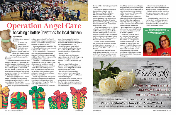 Monetary donations can also be made directly to the Somerset Junior Woman’ s Club and at any Citizens National Bank branch by depositing it into the Somerset Junior Woman’ s Club Operation Angel Care account.