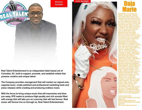 Daja Marie is an American Singer , Songwriter , Rapper . Her career began when she discovered her writing abilities in 2007 . She went on to record her first single and perform her first show in Indiana where she was born and raised . In 2015 she decided to take her talents to Atlanta , GA . After being on tour for years and receiving such a great welcoming feedback with her single “ Bankrolls Like Monopoly ” in the city she felt it was only right to make the move . In support of her last single “ Raindrops ,” and her previous single “ Bankrolls Like Monopoly ,” Daja Marie co-headlined the “ Go Hard or Go Home ” national tour which launched in New York , NY . She joined Silkk The Shocker , Bianca Bonnie , Talone , and Dricky Graham rocking the stage . “ Raindrops ”, available at all digital retailers and streaming services , impacted radio and topped digital radio charts . Daja Marie has graced the stage in a packed house at the legendary Stankonia Studios alongside Nigel Stargate , Keith Robinson , and friends . Currently Daja is promoting the release of her single “ Closet Freakk ” on all major platforms off her soon to release self-titled EP . Since releasing this single , she has opened up for Zaytoven , Tiffany Foxx , Young Dro , Foogiano , Cassidy , DJ Chose , Trap Beckham , Goodie Mobb ( TMoe , Gipp , Khujo , Ceelo Green ), Keith Murray and anticipates many more opportunities . She has graced the cover of SapphirEmrald Magazine and Raynbow Affair Magazine , as well as a feature artist on The Hype Magazine .