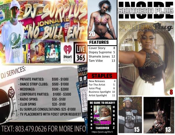FEATURES Cover Story 8 Dopey Supreme 5 Shamele Jones 12 Tam Viibe 13 New Releases 4 For The Artist 5 Juice Plug 6 Business Spotlight 10 Artist Spotlight 11 STAPLES 13 8 20 15 https :// joom . ag / Wx1I BE SURE TO READ !!! D Y A M 0 N D H U N T A Z TAKEOVER