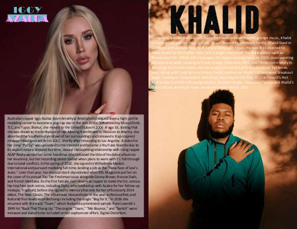 Australian rapper Iggy Azalea( born Amethyst Amelia Kelly) segued from a high-profile modeling career to become a pop-rap star in the late 2010s. Influenced by Missy Elliott, TLC, and Tupac Shakur, she moved to the United States in 2006 at age 16, stating that she was drawn to the birthplace of rap. Moving from Miami to Houston to Atlanta, she absorbed the Southern-style drawl of her surroundings and released a trap-inspired mixtape titled Ignorant Art in 2011, shortly after relocating to Los Angeles. A video for her song " Pu $$ y " was uploaded to the Internet and became a YouTube favorite due to its explicit nature. Around this time, Azalea ' s blossoming relationship with rising rapper A $ AP Rocky earned her some headlines( she tattooed the title of his debut album on her knuckles), but her recording career stalled when plans to work with T. I. fell through due to label conflicts. In the spring of 2012, she signed to Wilhelmina Models International and pursued modeling full-time, landing a job as the " New Face of Levi ' s Jeans." Later that year, her musical stock skyrocketed when XXL Magazine put her on the cover of its annual Top Ten Freshman issue alongside Danny Brown, Roscoe Dash, and French Montana. As the first female, non-American rapper to make the list, serious hip-hop fans took notice, including Diplo, who hooked up with Azalea for her follow-up mixtape, TrapGold, before she signed to Mercury Records for her official early 2014 debut, The New Classic. The album was reissued later in the year as Reclassified, and featured five newly recorded songs including the single " Beg for It." In 2016 she returned with the track " Team," which featured a prominent sample from Juvenile ' s 1999 hit " Back That Thang Up." The singles " Team," " Mo Bounce," and " Switch " were released and slated to be included on her sophomore effort, Digital Distortion.