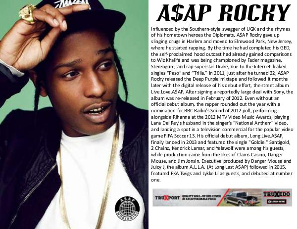 singles “Peso” and “Trilla.” In 2011, just after he turned 22, A$AP