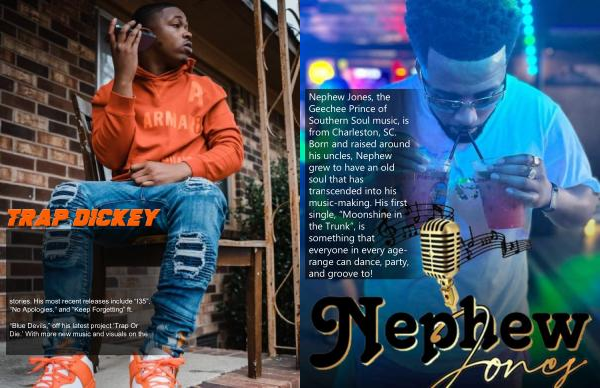 Nephew Jones , the Geechee Prince of Southern Soul music , is from Charleston , SC . Born and raised around his uncles , Nephew grew to have an old soul that has transcended into his music-making . His first single , “ Moonshine in the Trunk ”, is something that everyone in every agerange can dance , party , and groove to !