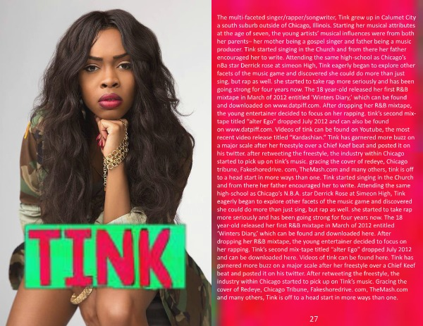 industry within Chicago started to pick up on Tink’s music. Gracing the