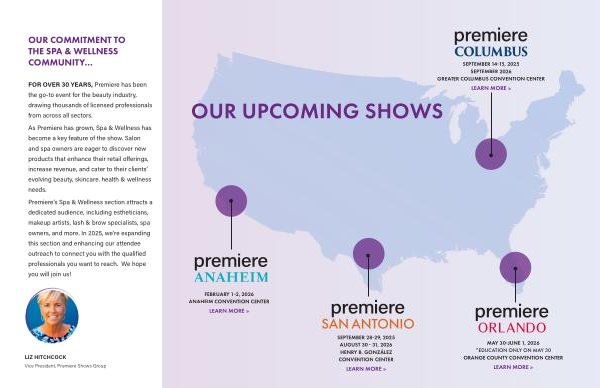Premiere’ s Spa & Wellness section attracts a dedicated audience, including estheticians, makeup artists, lash & brow specialists, spa owners, and more. In 2025, we’ re expanding this section and enhancing our attendee outreach to connect you with the qualified professionals you want to reach. We hope you will join us!