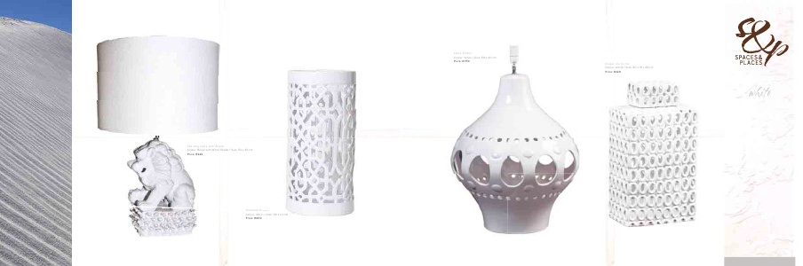 Lamp Potten Colour: White / Size: 59 x 40 cm Price: R750 Ginger Jar Circle Colour: White / Size: 50 x 18 x 28 cm Price: R420 white