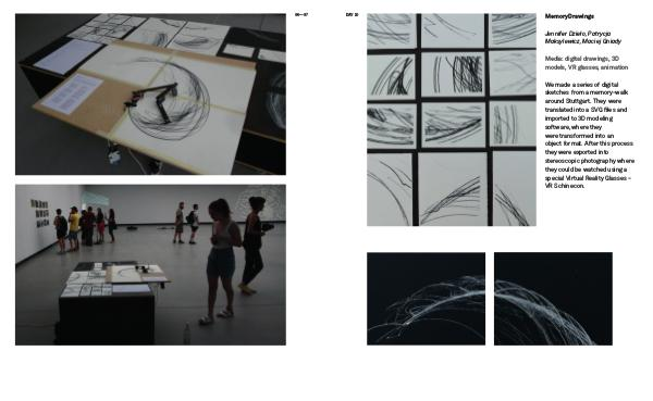 We made a series of digital sketches from a memory-walk around Stuttgart. They were translated into a SVG files and imported to 3D modeling software, where they were transformed into an object format. After this process they were exported into stereoscopic photography where they could be watched using a special Virtual Reality Glasses – VR Schinecon.