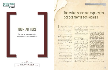 SOLUCIONES PRÁCTICAS Todas las personas expuestas políticamente son locales L a persona expuesta políticamente (PEP) es otro de esos aparentemente interminables acrónimos que pueblan la jerga de la Ley de Secreto Bancario (LSB). Las PEPs están definidas en el manual de examen de la Ley de Secreto Bancario/Antilavado de Dinero (ALD) del Consejo Federal de Examen de Instituciones Financieras (FFIEC, por sus siglas en inglés) de la siguiente manera: • Un “asociado cercano” de una figura política extranjera senior es cualquier persona amplia y públicamente conocida por mantener una relación inusualmente cercana con una figura política extranjera senior, e incluye a cualquier persona que esté en posición de realizar importantes transacciones financieras locales e internacionales en nombre de la figura política extranjera senior. El término “persona expuesta políticamente” generalmente incluye a una ex o actual figura política extranjera senior, su familia inmediata y sus asociados cercanos. La guía interagencia publicada en enero de 2001 ofrece a los bancos recursos que pueden ayudarles a determinar si un individuo es una PEP.243 Más específicamente: El nuevo tema candente • Una “figura política extranjera senior “ es un funcionario senior del poder ejecutivo, legislativo, administrativo, militar o judicial de un gobierno extranjero (sea electo o no), un funcionario senior de un partido político extranjero importante, o un ejecutivo senior de una compañía propiedad de un gobierno extranjero.244 Además, la figura política extranjera senior incluye a cualquier corporación, negocio u otra entidad que haya sido formada por, o para beneficio de, una figura política extranjera senior. • La “familia inmediata” de una figura política extranjera senior generalmente incluye a los padres, hermanos, cónyuge, hijos y parientes políticos de dicha figura. Elaborar una lista de PEPs locales parece ser el nuevo furor de la LSB, aunque muchas instituciones financieras ya han estado manteniendo una lista de PEPs domésticas por separado o tienen una lista combinada con PESs extranjeras. La definición de las PEPs locales es un procedimiento bastante rutinario. Dado que las PEPs extranjeras de una nación son exactamente las PEPs locales de otra nación, podría aplicarse la misma definición del FFIEC, reemplazando el uso de los distintos títulos de la nación (secretario por oposición a ministro, por ejemplo). La definición de una figura política de nivel senior también es bastante directa. Basta con decir que en los Estados Unidos cualquier funcionario federal electo formaría parte de la lista, además de los jueces de la Corte Suprema, los embajadores y secretarios, subsecretarios, directores que forman parte del gobierno estadounidense. Uno podría argumentar que el sistema de gobierno de los Estados Unidos tiene un segundo nivel de PEPs senior locales, aquellos en el nivel estatal, que en el contexto del gobierno estatal están en la misma posición cuando se trata de autoridad e influencia. Identificación Cualquiera sea la postura que se adopte, es en la etapa del programa de identificación del cliente (PIC) donde todas las PEPs deben ser identificadas y reportadas a los fines del cumplimiento LSB. Cualquier empleado que administre el PIC en una institución financiera debe ser entrenado sobre quién exactamente su institución puede incluir como tal. El cargo es lo que se busca porque los funcionarios públicos entran y salen según el humor del electorado. Dado que el formulario de apertura de una cuenta nueva requiere información sobre el empleo, la tarea parecería ser que se trata más de conservación de registros que de cualquier otra cosa, sin embargo, la mayoría de los ex funcionarios públicos terminan teniendo otras ocupaciones. Junto con el triste hecho de que en los Estados Unidos un gran segmento de la población tendría que pensar dos veces el nombre de sus senadores y representantes actuales en el Congreso, y seguramente mucho menos podrían decir quién ocupó el cargo antes, por lo que la tarea puede no ser tan simple como parece y se vuelve más difícil aún cuando sus parámetros PEP incluyan a los funcionarios estatales. En lo que se refiere a los familiares y asociados cercanos, una búsqueda en Internet del funcionario, junto con cual- ACAMS TODAY | DICIEMBRE–FEBRERO 2012 | ACAMS.ORG/ESPANOL | ACAMSTODAY.ORG 41