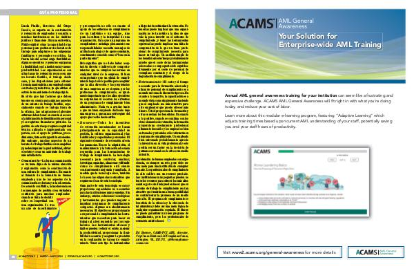 66 ACAMS TODAY | MARZO – MAYO 2016 | ESPANOL. ACAMS. ORG | ACAMSTODAY. ORG