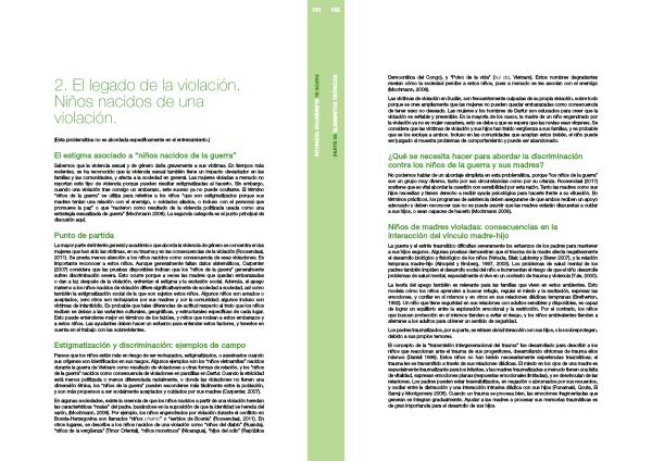 No podemos hablar de un abordaje simplista en esta problemática , porque “ los niños de la guerra ” son un grupo muy diverso , tanto por sus circunstancias como por su crianza . Roosendaal ( 2011 ) sostiene que es vital abordar la cuestión con sensibilidad por esta razón . Tanto las madres como sus hijos necesitan y tienen derecho a recibir ayuda psicológica para hacerle frente a su situación . En términos prácticos , los programas de asistencia deben asegurarse de que ambos reciben un apoyo adecuado y deben reconocer que no se puede asumir que las madres estarán dispuestas a cuidar a sus hijos , o sean capaces de hacerlo ( Mochmann 2008 ).
