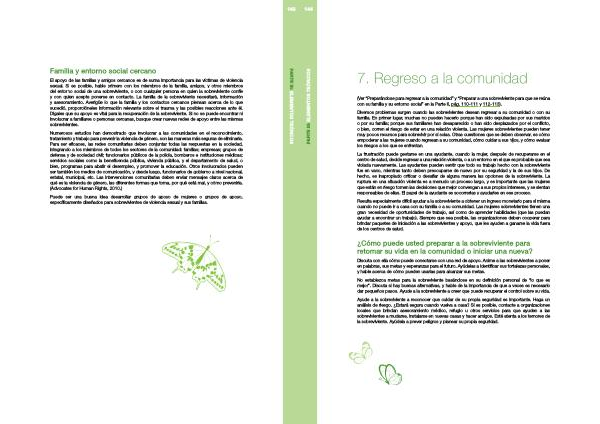 El apoyo de las familias y amigos cercanos es de suma importancia para las víctimas de violencia sexual . Si es posible , hable primero con los miembros de la familia , amigos , y otros miembros del entorno social de una sobreviviente , o con cualquier persona en quien la sobreviviente confíe y con quien acepte ponerse en contacto . La familia de la sobreviviente necesitará , información y asesoramiento . Averigüe lo que la familia y los contactos cercanos piensan acerca de lo que sucedió , proporcióneles información relevante sobre el trauma y las posibles reacciones ante él . Dígales que su apoyo es vital para la recuperación de la sobreviviente . Si no se puede encontrar ni involucrar a familiares o personas cercanas , busque crear nuevas redes de apoyo entre las mismas sobrevivientes .
