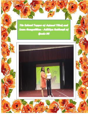 The School Topper of Asianet Think and Learn Competition - Adithya Ratheesh of Grade 5C
